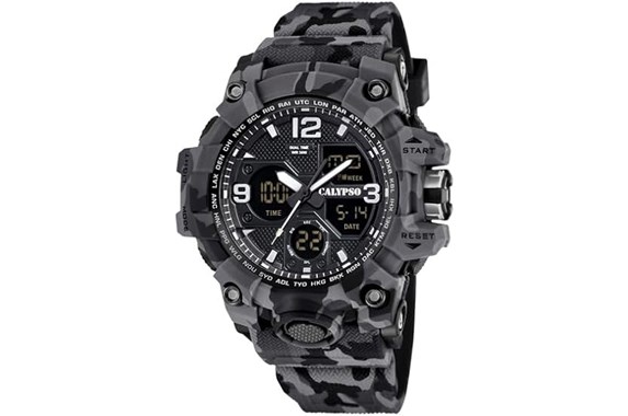 - Grey and black camouflage design - unique and modern style; Calypso watch K5855/4 combines grey and black camouflage, perfect for anyone looking for a modern and attractive look