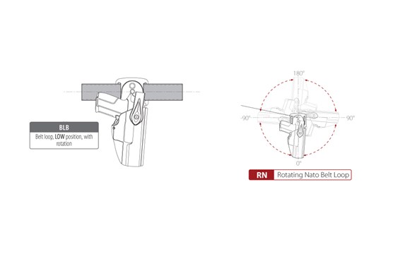 Besides this it can be applied to the holster with a three point application, integrated and personalized with a large range of spacers and distance plates, which permit the customisation of the inclination, the height and the distance from the operators body depending on the operating needs.