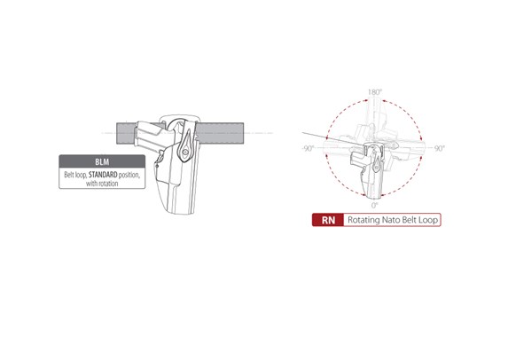 Besides this it can be applied to the holster with a three point application, integrated and personalized with a large range of spacers and distance plates, which permit the customisation of the inclination, the height and the distance from the operators body depending on the operating needs.