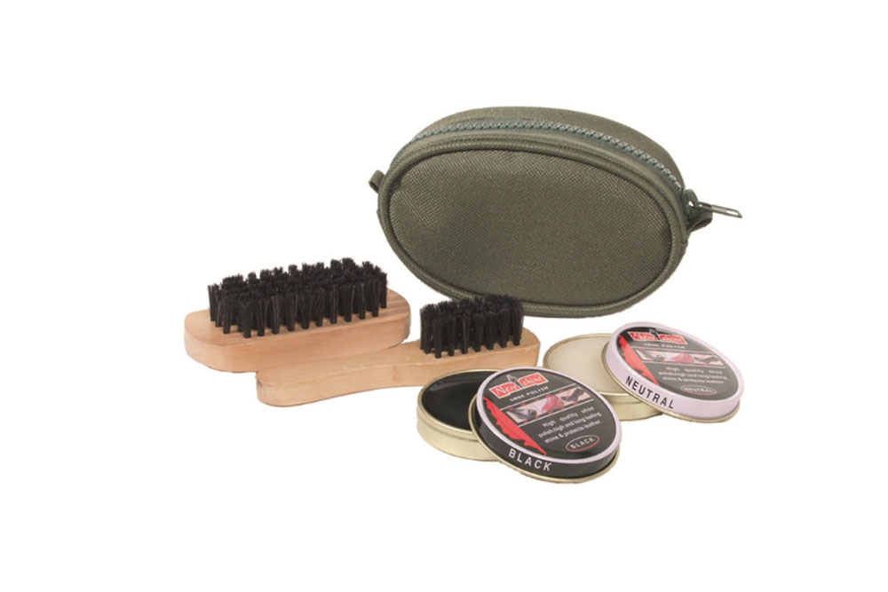 Ficka: 100% Nylon, Polyvinylchlorid coated- 2 trä borstar- 2 sko polish- 1 transportficka