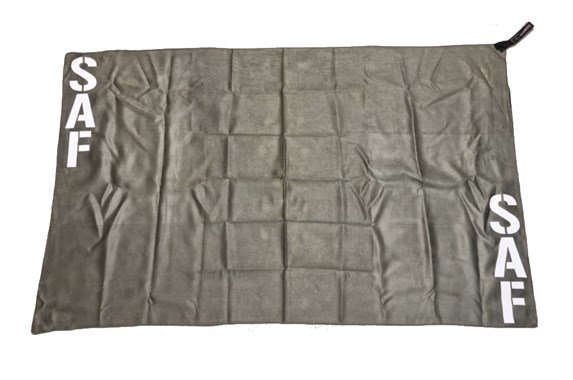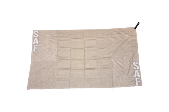En snabbtorkande microfiber handduk med SAF tryck på.