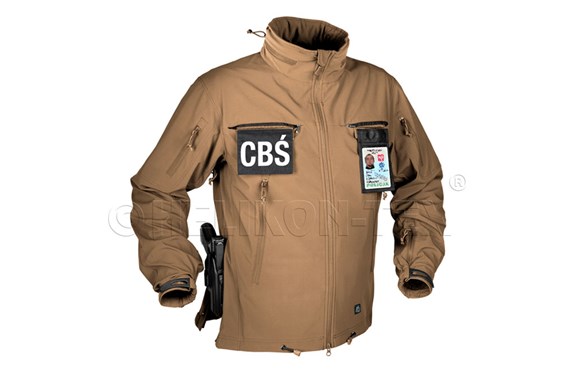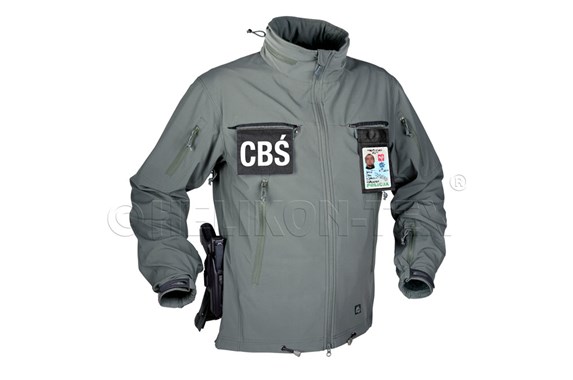 Tack vare användningen av Helikon-Tex ® Wind Blocker material, tillhandahåller jackan ett bra skydd mot vind. Jackan är även belagd med Teflon DuPont ™ som skyddar mot smuts och vatten. Huvan kan enkelt justeras genom två snören. Jackan är utrustad med tre dolda ID-paneler. Det ingår tomma paneler för att tillåta egen anpassning genom att brodera eller skriva namn/beteckning på dem.