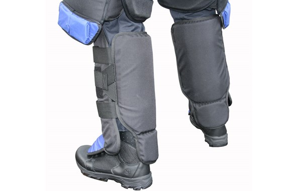 Ben och häl är väl skyddade för olika tekniker som sparkar, svepning, slag med batonger etc. Det finns en överlappning i byxornas knäleder som ger ett extra skydd. Benskydden kan även användas separat då de inte är anslutna med byxorna.