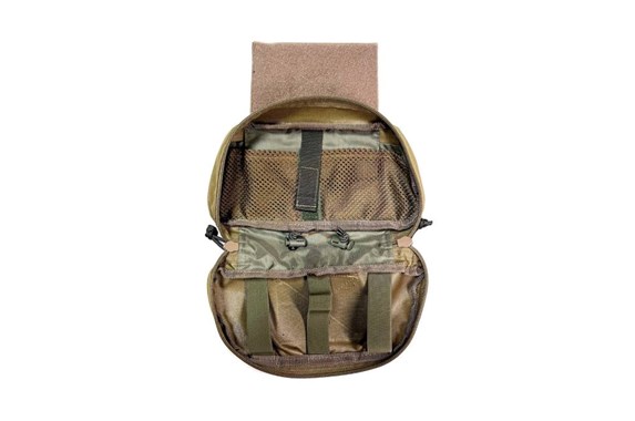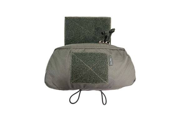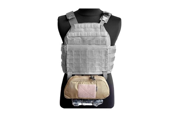 UTactic Groin Protection Pouch är utformad för att monteras på plattbärare, skyddsvästar och bröstfickor. Det finns tillräckligt med utrymme inuti för att passa en vanlig IFAK. Fickan kan användas för många andra praktiska ändamål. En av funktionerna hos denna utrustning är möjligheten att installera en skyddspanel i ett speciellt fack inuti, vilket gör att du kan öka skyddsområdet utan att förlora rörlighet. Nätfickan på bakväggen kan användas för små föremål. Det finns tre elastiska band på framväggen för att säkra olika föremål.
