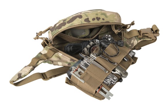 Medelstora midjeväska från vår "pungdjurs" Line. Väskan erbjuder ett antal unika egenskaper paketerat i en jämn, låg profil. Användaren kan välja spännenas placering, stuva undan väska bälte, ta bort eller ersätta interna kardborreband och skräddarsy den för olika tillämpningar. De fyra fickorna är tillräckligt stora för att passa personliga saker tillsammans med grundläggande medicinska förnödenheter eller en windshirt jacka. Bandicoot sidovingar tillåter fastsättning av PALS / MOLLE fickor eller andra tillbehör.