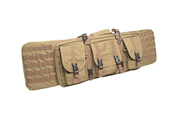 Vapenväska som är lämplig för vapen upp till 100cm. Väskan har förutom vapen fickan/platsen ytterligare en medium ficka och 3 mindre fickor som sitter på yttersidan. Molle banden på väskan gör att man kan fästa ytterligare fickor med molle på väskan. Finns i tre färger.
