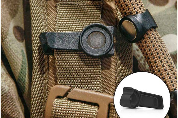 The Magnetic Clip holds the drinking tube and valve of any hydration system in place when on the move and prevents the tube from dangling around the chest. It easily attaches to shirt, shoulder strap or MOLLE webbing.